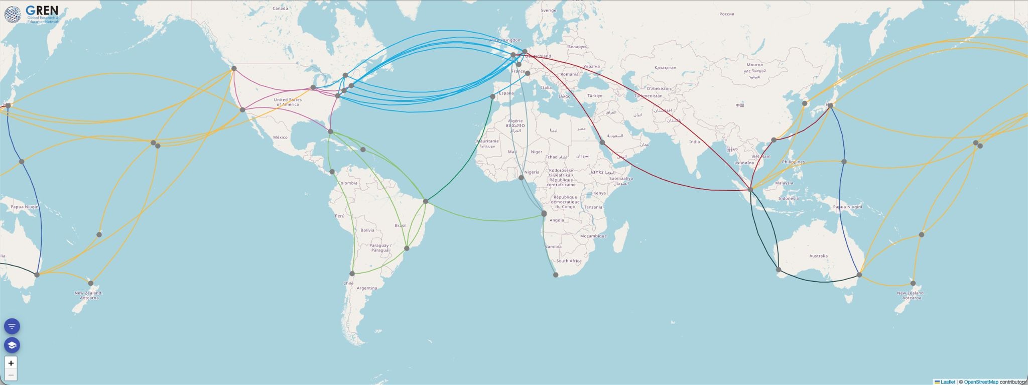* Global Network Advancement Group (GNA-G) Projects: We are replicating the map currently found on the GNA-G website, featuring international connection projects (e.g., AmLight, APOnet, BELLA, etc.) within our dynamic environment. * Reference Source: GNA-G Static Maphttps://www.gna-g.net/wp-content/uploads/2024/12/GNA-G-Projects-Global-Map-Dec24-2048x906-1.jpg * NRENs Map: A consolidated view of multiple NREN topologies in a single visualization. * Reference Source: GÉANT Compendium Maphttps://compendium.geant.org/network-map
